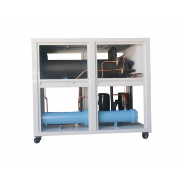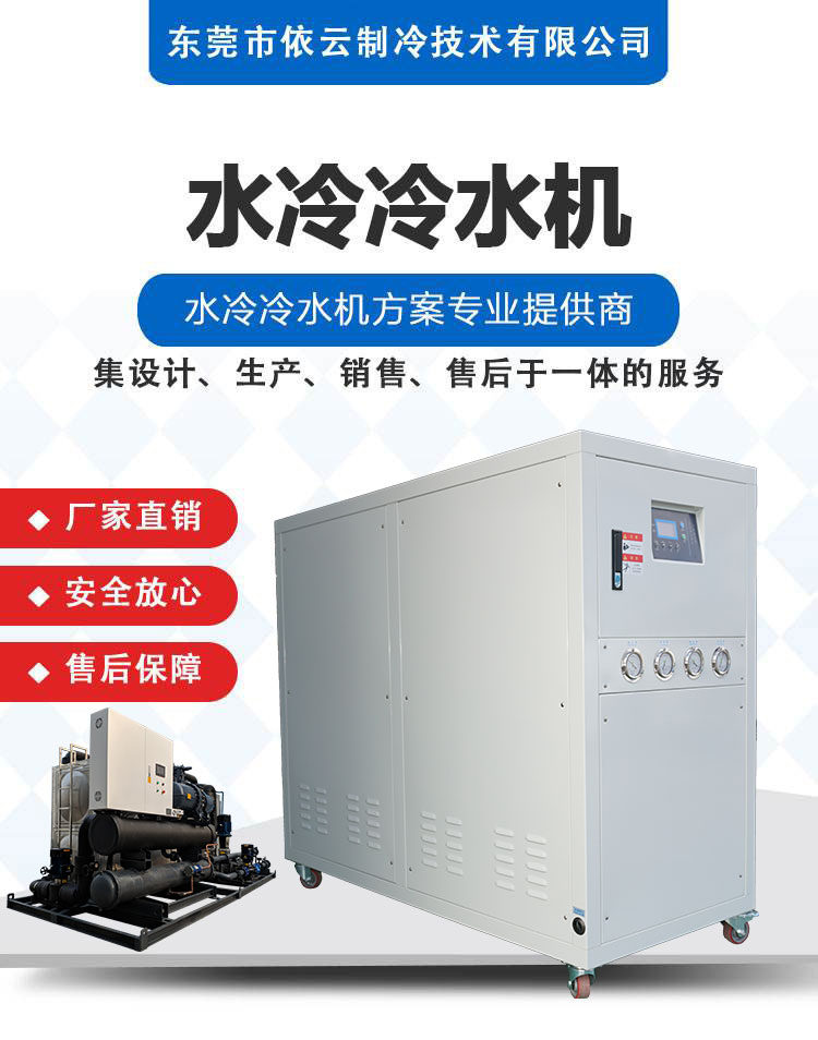 水冷箱式冷水機散熱要冷卻塔,所以水冷箱式機組使用需要配置冷卻塔和冷卻水泵,制冷溫度5℃~30℃,溫控精度0.5℃,買水冷箱式冷水機**生產廠家東莞依云制冷。由于其換熱的介質是水,配備的有冷卻水塔,結構為箱體式,故稱為“水冷箱式冷水機”。
