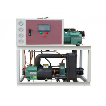 水冷式低溫冷凍機組采用外接冷卻水塔進行機器散熱,有效的提高了機器的散熱效率,機器的能效比更高。機組體積更小,大功率的低溫冷凍機組一般都采用水冷式。